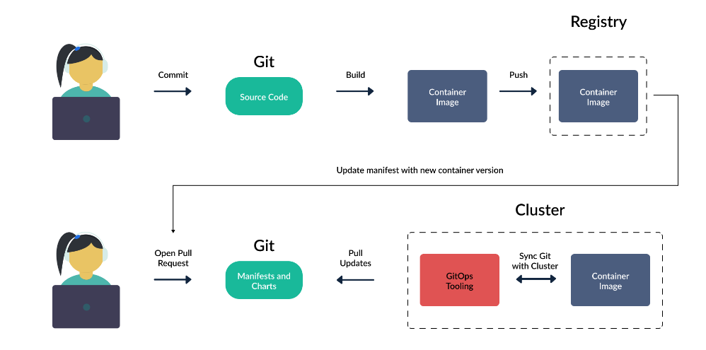 Um commit do git é uma excelente forma de se ter um snapshot imultável de toda uma hierarquia de arquivos, e isso o torna o armazenamento ideal para se utilizar em GitOps. Toda alteração feita no git automaticamente substitui todo o estado anterior ao invés de somente realizar apenas uma mudança, e sempre que essa substituição acontece é criada uma nova versão do estado.